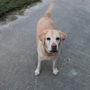 Luna is een prachtige blonde Labrador Retriever, en ondanks haar leeftijd straalt ze nog altijd een jeugdige energie uit. Haar vriendelijke ogen zijn groot en expressief en haar kwispelende staart verraden haar opgewekte natuur. Luna heeft een rustige uitstraling, maar ze is ook altijd alert en nieuwsgierig naar haar omgeving. Haar trouwe en loyale persoonlijkheid maakt haar een geweldige metgezel voor iedereen die van honden houdt. Ze is een ervaren en verstandige hond die de juiste balans vindt tussen vrolijkheid en kalmte. Luna heeft een hart van goud en zal altijd trouw blijven aan haar baasjes, haar gezin en haar vrienden.
